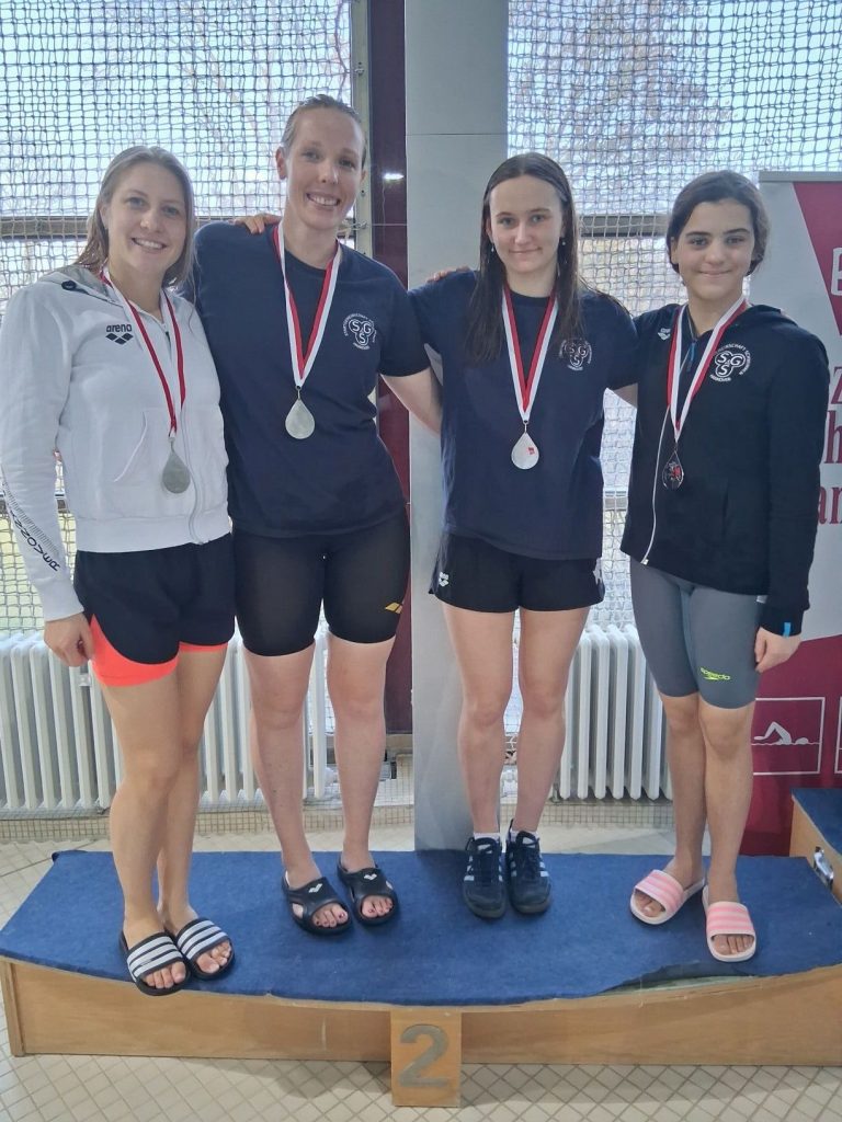 Anschließend schwamm die 4x100m Freistil mixed offen Staffel in 04:12,87 min zum Silbergewinn mit der Besetzung von Ava Großmann, Carina-Joelle Rumpel, Jakob Patzelt und Pia Abdic.