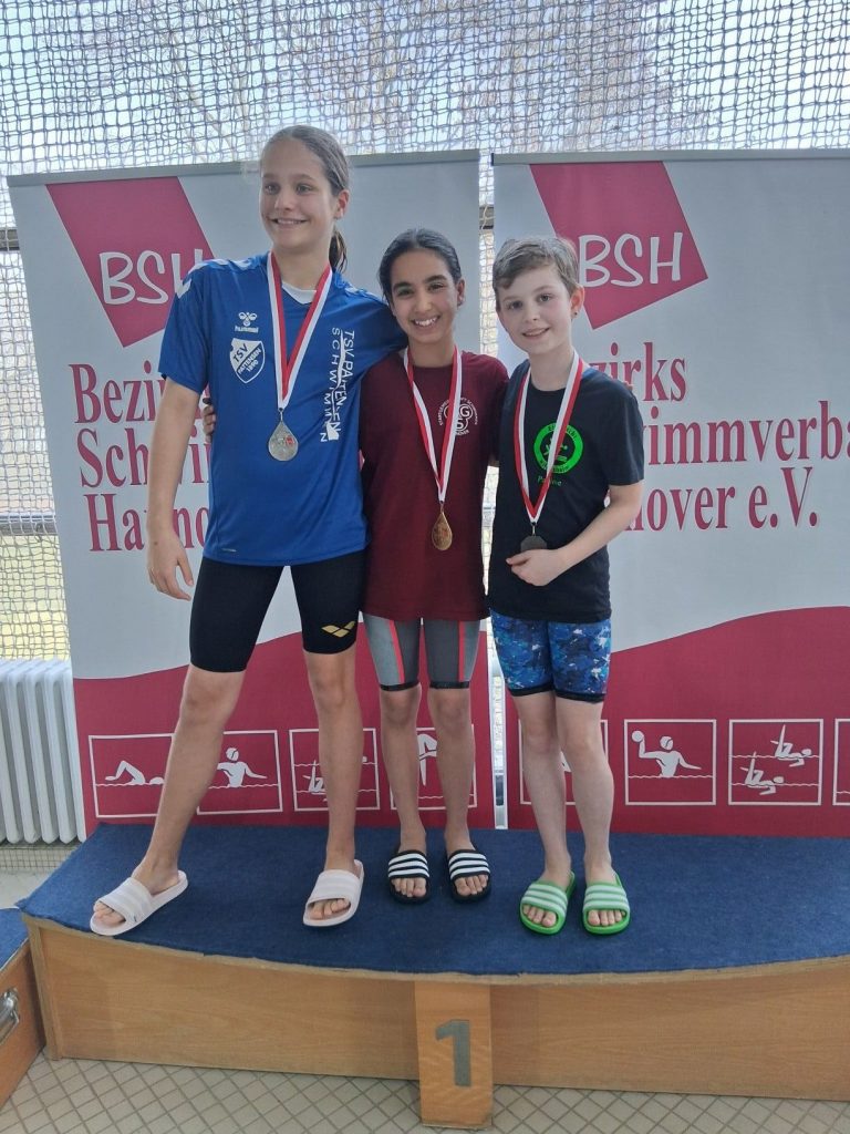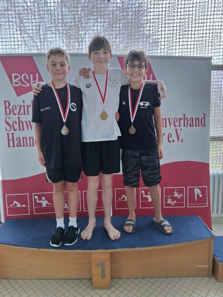 Insgesamt qualifizierten sich 67 SGS-Aktive mit 269 Starts und 8 Staffeln für die Bezirksmeisterschaft. Mit 26x Gold, 25x Silber, 20x Bronze und 106 Bestzeiten war die Ausbeute an der zweitägigen Veranstaltung sehr gut. Die erfolgreichsten TeilnehmerInnen im Einzelschwimmen waren Simon Dannenberg mit 3x Gold und 2x Silberund Kim Kägebein mit 3x Gold und 1x Silber. Auch Eva Martynava 3x Gold und Luisa Schulze 2x Gold, 1x Silber und 1x Bronze sammelten fleißig Medaillen.