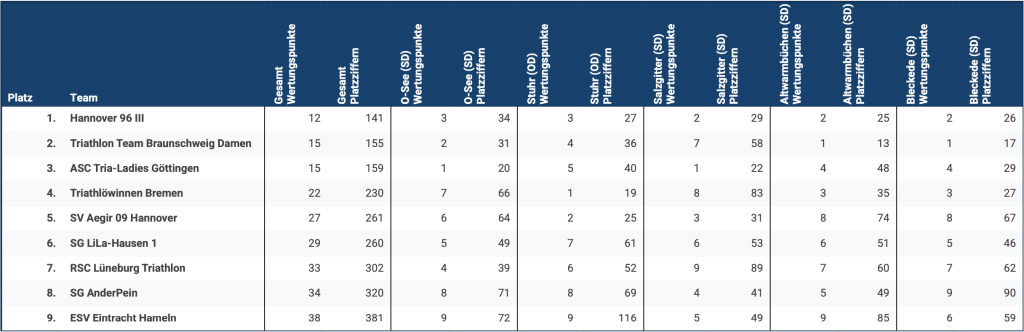 Landesoberliga Niedersachsen – Damen (Nach 5 von 5 Rennen)